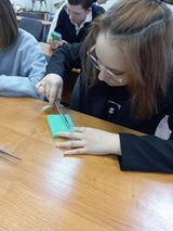 II. Хирургическая работа, когда с каждый школьником наши волонтеры Силагина Вероника и Казанская Алина отработали навыки соединения тканей, ребята вязали хирургические узлы и накладывали хирургические швы.