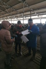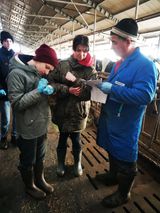 На фото студенты определяют самок крупного рогатого скота в охоте (дополнительно оказывают помощь производству - проводят вакцинацию коров под руководством ветеринарных специалистов базового хозяйства).